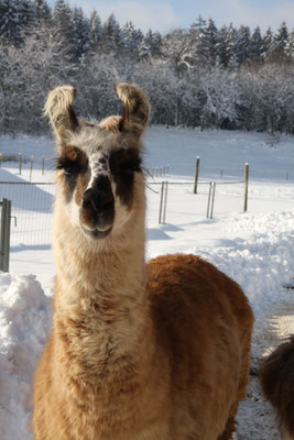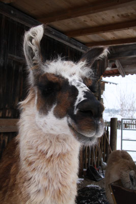 Die längsten Wimpern hat Belinda auf dem Lamahof!